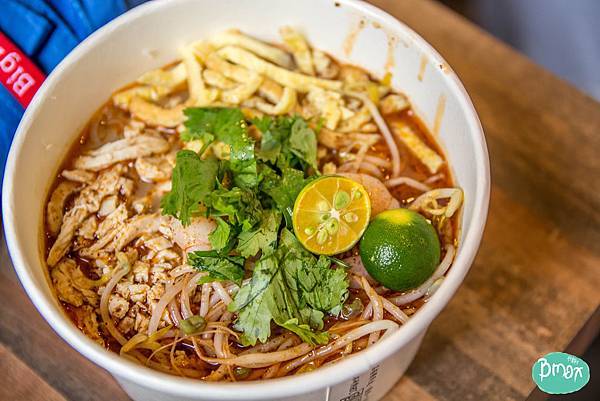論酸的話,湯頭並沒有阿薩姆叻沙的那種酸,但如果你愛吃微微的酸的話,可以把酸柑在叻沙上擠一擠攪拌再吃。